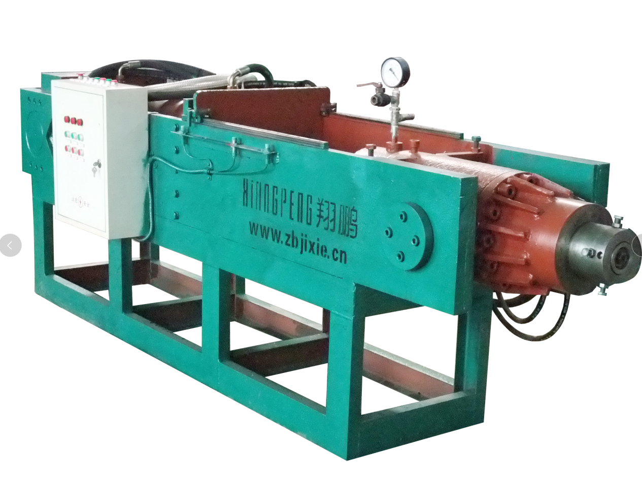 設(shè)備由主機(jī)、液壓系統(tǒng)、控制系統(tǒng)、抽真空系統(tǒng)及制品托架(客戶自配)構(gòu)成。主要特點(diǎn)是:工作壓力大(主液壓缸產(chǎn)生的推力可達(dá)300T--1600噸以上),效率高,結(jié)構(gòu)新穎,造型美觀,操作控制十分方便,大大降低了工人的勞動(dòng)強(qiáng)度??芍谱魈蓟柚破分械母鞣N管、棒、板等型材,是一種具有高性能節(jié)能的設(shè)備。